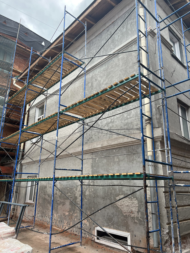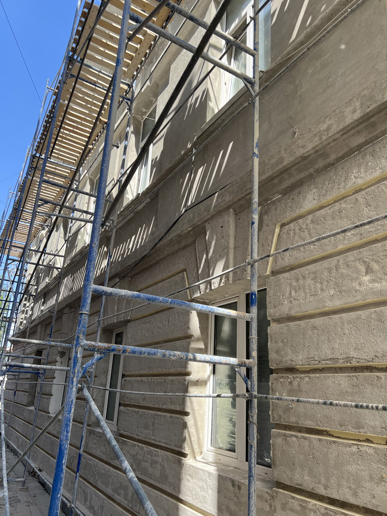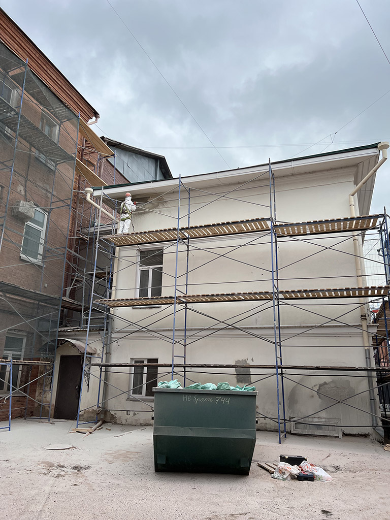 Фасад после гидроабразивной очистки и мойки готов к восстановлению.